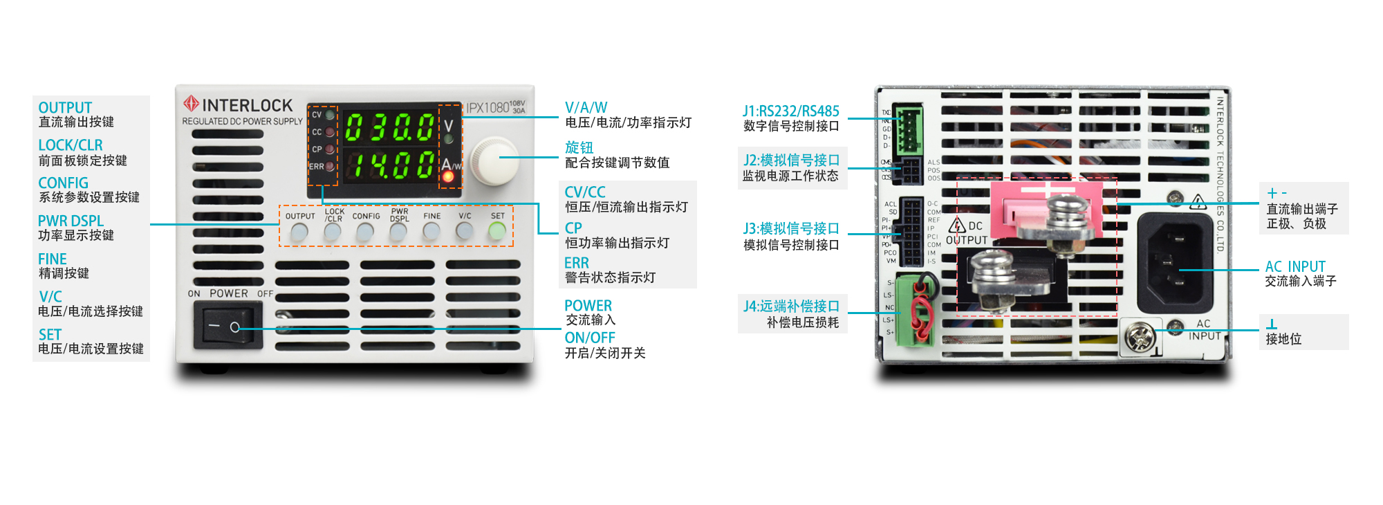 ※电源后面板标配RS232和RS485通讯接口,以及完备的模拟控制接口,方便用户组成需要的自动测试系统。