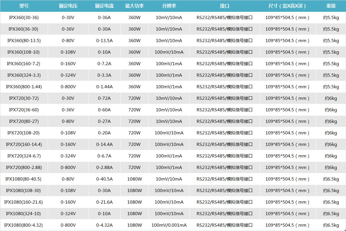 ※IPX系列电源是在额定功率范围内,电压和电流可以实现宽范围变化的高功率密度、高性能的可编程开关电源。